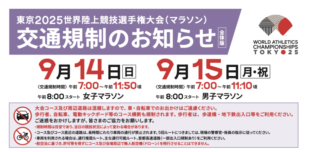 詳細はこちら:https://www.keishicho.metro.tokyo.lg.jp/kotsu/doro/regulation/traffic_regulation/marathon_2025.html