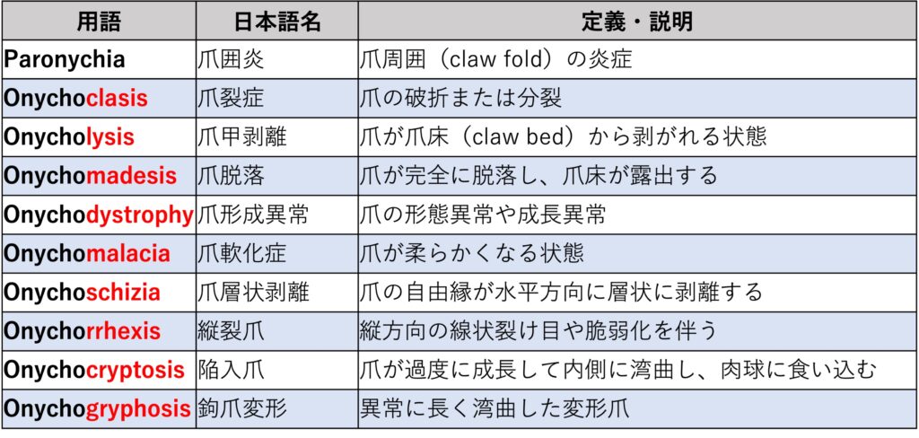 医学的には、爪の異常(=爪病変)はかなり細かく分類されています。